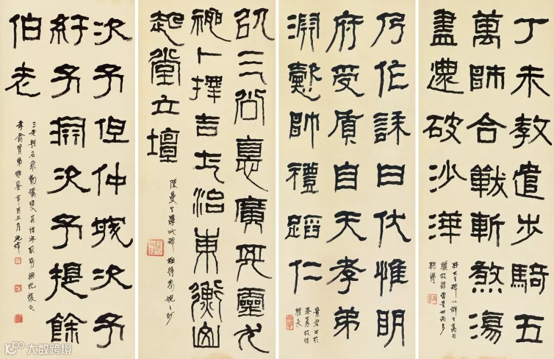 中国书法史记录了中华文明史的发展。每个朝代在文字和书法的表现上都有自己的体式,每个朝代的独特审美都在书法上有了准确的体现。春秋战国的混乱,诞生大篆体式的百花齐放,思想意识审美的开放表现在书法上,就有了七国文字的丰富与绚烂。大一统的秦国诞生了中华民族第一次的文字统一,表现在小篆上。及至汉代,产生了丰富多样的隶书,体式横展,长袍大袖,飞动飘扬,反映着汉代审美理念的开放性。唐代森严的法书与两晋“二王”书法中文人出世的飘逸与轻松,宋代的行书体式的丰富,都是各时代审美意识的体现。