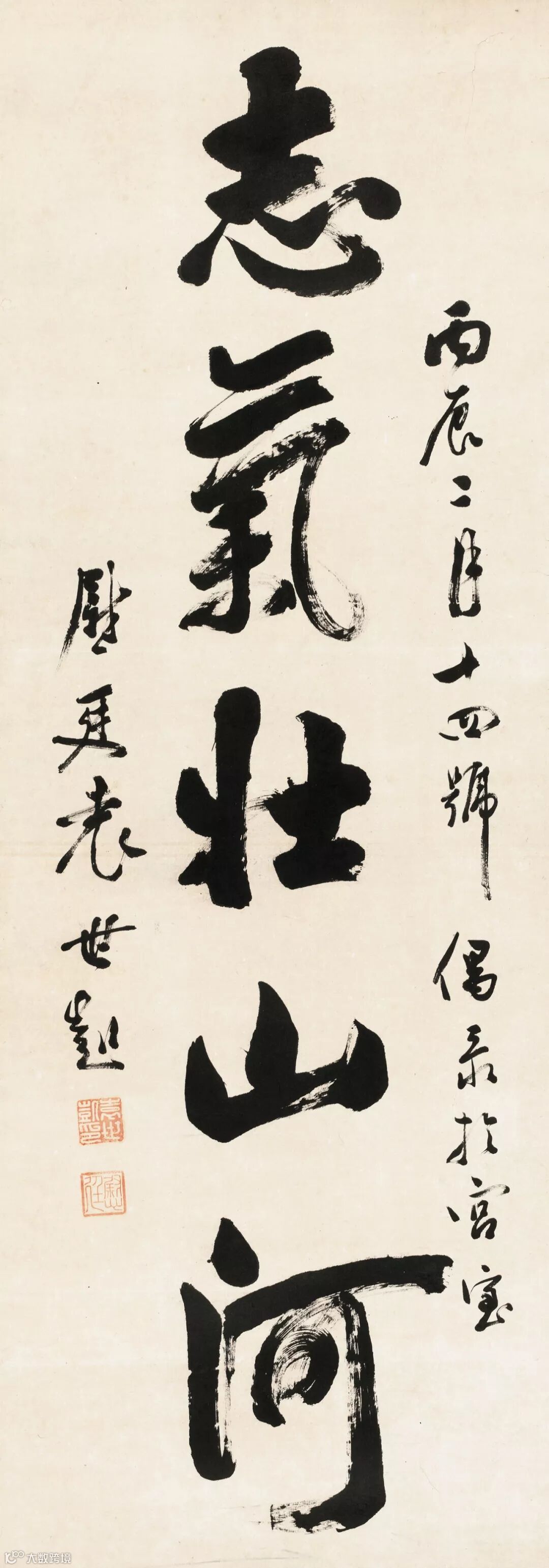 释文:志气壮山河。丙辰二月十四号偶录于宫室, 慰廷袁世凯。