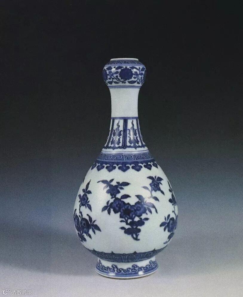 蒜头瓶因瓶口形似蒜头而得名,始见于汉代青铜器造型,瓷制者则出现于明晚期,尤以嘉靖、万历两朝为盛,清代继续烧造,器形更趋成熟秀美。