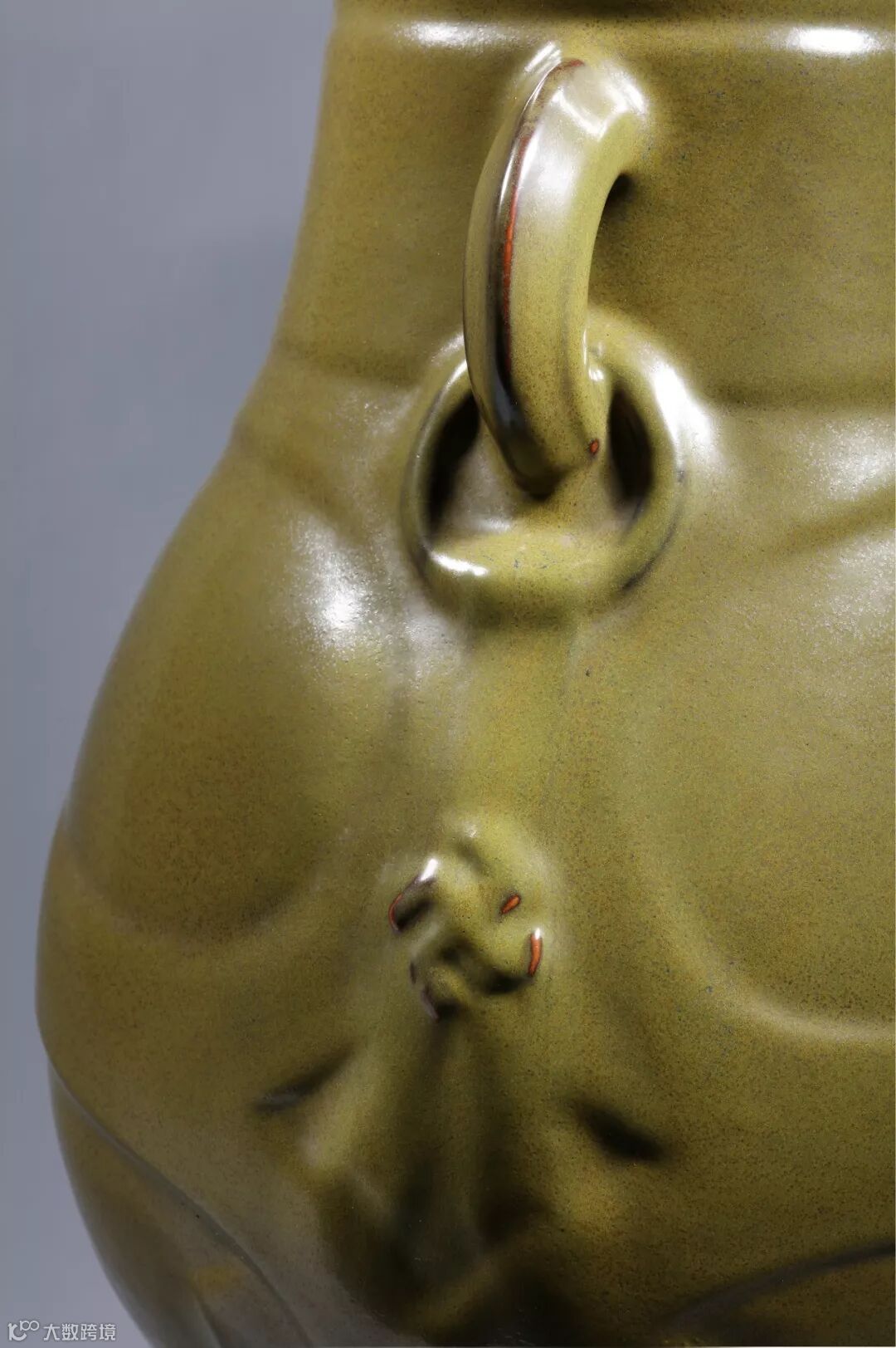 清雍正 茶叶末釉汉壶尊 局部