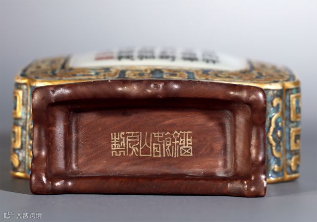 拍品此诗是乾隆癸亥(乾隆八年)七月中旬西巡途中所作。据《清宫造办处活计清档》记载,乾隆八年『八月初四日,广储司库使曹报上带来内大臣海望信帖一封,内开本年七月二十七日太监高玉交御题《蘅皋掇菁藻》五言诗一首。传旨:著寄与唐英照从前烧造过挂瓶式样,将此诗写上,烧造数件送赴来京,钦此』。由此可知,此件壁瓶式样和搭配的御制诗,系乾隆帝所钦定。