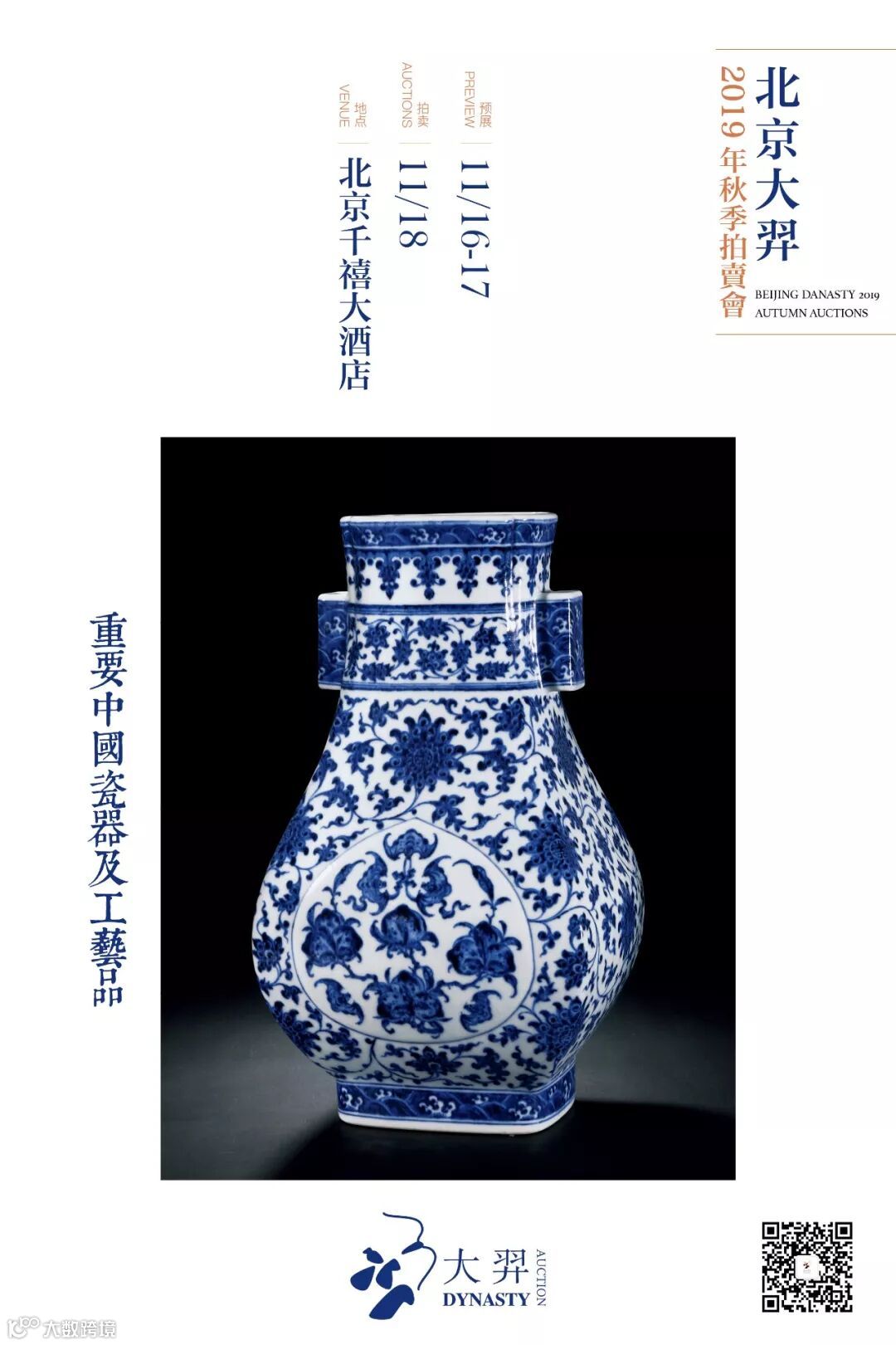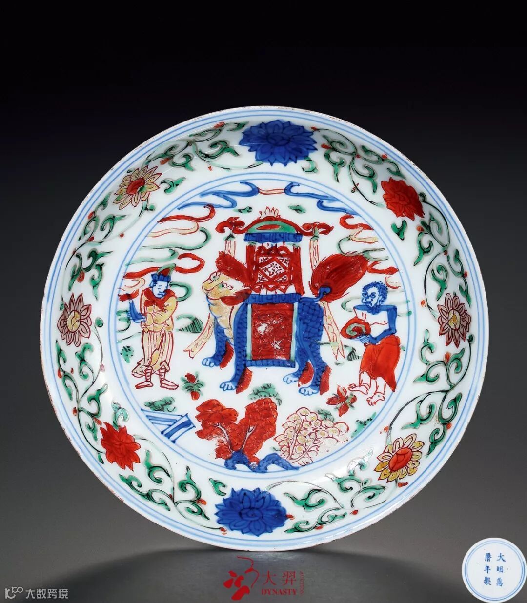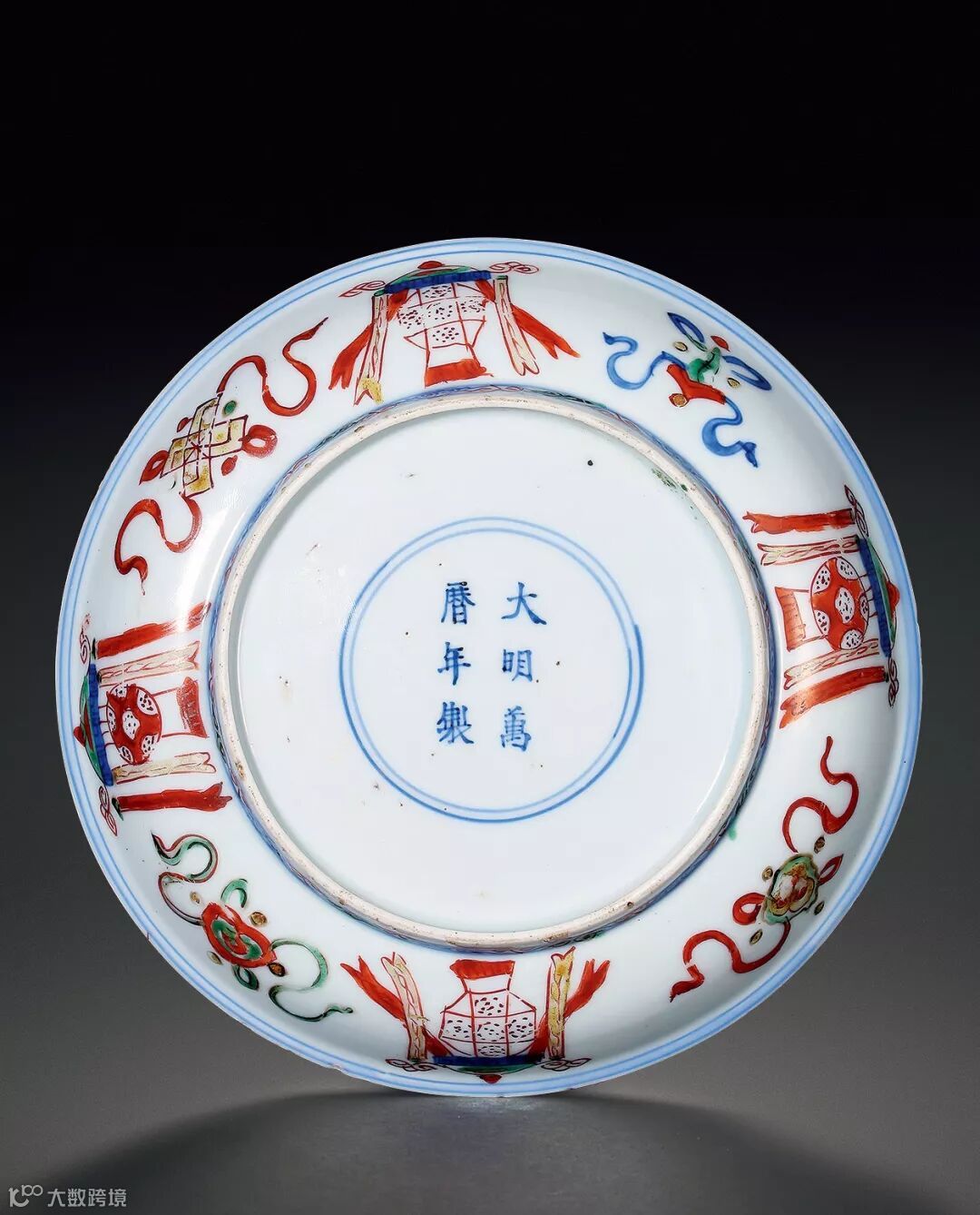 Lot 618 明万曆 青花仕女琴棋书画图碗记录:伦敦苏富比,2004年11月10日,编号 606款识:“大明萬曆年製”六字双行楷书款21.5 cm. diam.RMB: 400,000-600,000本品敛口弧腹,下承圈足,碗形硕大,颇具气势。碗胎质精细,修胎规整,釉汁肥润,釉面光洁。外壁以青花绘仕女图,几位仕女或挂画观赏,或开卷读书,或屏前对弈,或抚琴听音。正是琴棋书画备具,描绘出古代才女之能。碗足墙绘卷草纹,外底心双圈内青花书“大明萬曆年製”六字双行楷书款,书写颇有颜体味道,是当时典型的官窑书写方式。台北故宫博物院藏 明万历 青花仕女琴棋书画图碗 本品是萬曆官窑对于永宣作品的追慕之作,从器型到纹饰布局均完全一致,只是人物描绘换以萬曆时的画法。而到了清代康熙时期,亦有同样题材的御窑作品存世。目前各大博物馆及私人收藏中见有明永乐、宣德、萬曆以及清康熙时期的青花琴棋书画仕女图大碗,完整的记录了明清两代在御窑瓷器制作上的传承脉络,若可成系列收藏,定为收藏佳话。 参阅:《故宫博物院藏文物珍品大系—青花釉里红(中)》,耿宝昌主编,上海科学技术出版社、商务印书馆(香港),2000年,第215页、图197 Lot 620 明万曆 青花鱼藻纹碗一组六只款识:“萬曆年造”、“德化长春”款12.5 cm. diam.RMB: 80,000-100,000Lot 620 明万曆 青花鱼藻纹碗一组六只 (包装图)拍品撇口,弧腹,卧足。外壁以青花绘鱼藻纹饰,画工精细,生动传神,青花发色浓艳,蓝中泛紫,为典型明代晚期青花发色。足心以青花书萬曆时期的“萬曆年造”及“德化长春”款识。此组碗造型规整,胎体坚致,釉面肥润,为典型明代萬曆青花瓷美品。 Lot 621 明弘治 白地暗刻海水江崖绿龙纹碗款识:“大明弘治年製”六字双行楷书款16 cm. diam.RMB: 180,000-250,000Lot 621 明弘治 白地暗刻海水江崖绿龙纹碗 (碗心图)碗敞口,弧壁,圈足。此碗造型规整,线条柔和秀美,通体施釉滋润,釉色微泛青白,碗外壁饰绿彩行游龙纹,间以“壬”字云纹,龙身遒劲;胫部暗刻海水江崖纹,碗底青花双圈内书“大明正德年製” 六字双行楷书款,全器纯以绿、白二色为饰,对比突出,纹饰朴着,有良好的视觉效果,此碗纹细腻生动,施彩设色淡雅脱俗,属明代中期宫廷御瓷之代表性器物,白釉绿彩器之经典品类,尤受正德皇帝喜爱。参阅:《故宫博物院藏文物珍品大系·杂釉彩、素三彩》,上海科学技术出版社,2009年,页88,图69 Lot 622 明嘉靖 红绿彩海水云龙纹葫芦瓶一对记录:伦敦苏富比,2008年11月5日,编号7220.5 cm. high.RMB: 30,000-50,000历代帝王中,崇道、崇佛者历朝均有,然而明代皇帝的崇道之举以及笃信程度,在某些方面甚至超过历史上信奉佛教和道教最著名的梁武帝和宋徽宗,使此时的瓷器具有了鲜明的道教特色。葫芦为道家的法器和特殊标志。道教中常说“袖里乾坤大,壶中日月长”,这里的壶正是葫芦。且“葫芦”取其谐音则为“福禄”所以在嘉万时期,葫芦瓶大为流行,品种包括了青花、各种单色釉、彩瓷等。此对红绿彩海水云龙纹葫芦瓶为萬曆时期代表作品。造型端正,器身主体绘飞龙在天,御浪而行,所着彩饰热烈奔放,红彩鲜亮,绿彩明丽。施彩大胆,而色调过渡却极其自然,无一丝滞碍之处,古意纯然,气息高古。参阅:伦敦苏富比,2004年6月9日,户栗美术馆专场,编号31明万历 五彩穿花龙纹葫芦瓶 Lot 623 明万曆 青花五彩进宝图盘款识:“大明萬曆年製”六字双行楷书款20 cm. diam.RMB: 30,000-50,000Lot 623 明万曆 青花五彩进宝图盘(底部图)本盘敞口弧腹,平底圈足,造形小巧精致。盘心主体以青花及红绿彩绘制蛮人进宝场景,一满身鳞甲之红鬃瑞兽背驮一盏巨大的风灯正缓步而行,前后各有一身着西域服饰之男子手捧宝物伴侍随行,周围以各色彩料绘制洞石、花卉,空中五色祥云缭绕,甚是吉祥。本盘以进宝为主题纹饰,巧借“风灯”谐音“丰登”,表达了人们期盼五谷丰登,丰衣足食的美好愿望。盘内壁以红、绿、蓝等各色彩料绘制缠枝花卉一周,外壁则点缀金锭、花钱、风灯等各式宝物,底心双圈内青花书“大明萬曆年製”六字双行楷书款,字体笔力雄健,笔画流利,为萬曆官窑器物之典型款识。萬曆五彩冠称古今,独步一时。《匋雅·卷下·十三》有评“萬曆五彩,草昧初开,往往显其拙相,皆非寻常匠手所能几及。”本品是为当中显著的一例。萬曆五彩素以色彩浓艳,画风写意闻名于世,特别是这一时期的青花五彩器将发色苍翠的回青料与釉上彩料巧妙搭配起来,形成一种交相辉映的强烈美感,为历代藏家所追捧。 Lot 624 明万曆 青花五彩进宝图盘一对来源:Commander F Warrington-Strong.DSC.记录:伦敦苏富比,2008年11月5日,编号74展览:City Art Gallery,1965-1998款识:“大明萬曆年製”六字双行楷书款12.7 cm. diam.RMB: 50,000-80,000Lot 624 明万曆 青花五彩进宝图盘一对(底部图)萬曆五彩瓷器久负盛名,因颜色鲜艳、纹饰丰富,受到后世的追捧与喜爱,欧洲、日本藏家尤其情有独钟。拍品尺寸小巧,相同品种可见于仇焱之旧藏之器。内外壁均以五彩为饰,外壁绘杂宝和宫灯,内壁饰缠枝花卉纹,盘心绘进宝图,笔触流畅,形象生动,布局繁密,釉下青花发色浓丽,釉上黄、红、绿彩色泽鲜艳,为萬曆五彩中较为少见的品种。参阅:《故宫博物院藏文物珍品大系·五彩、斗彩》,上海科学技术出版社,1999年,页48,图44 Lot 625 明万曆 青花五彩秋葵纹碗一对款识:“大明萬曆年製”六字双行楷书款13 cm. diam.RMB: 600,000-800,000