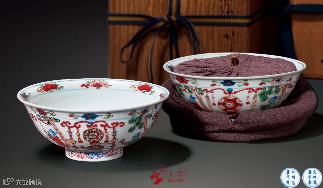 Lot 626 明万曆 青花五彩五谷丰登图碗一对来源:两只碗原为一对,由日本陶瓷鉴定专家小山富士夫和藤冈了一分别收藏(传)。器物包装有题签。款识:“大明萬曆年製”六字双行楷书款16.8 cm. diam.RMB: 800,000-1,000,000Lot 626 明万曆 青花五彩五谷丰登图碗一对 北京故宫博物院藏 明万历 五彩人物图碗 萬曆青花五彩瓷器久负盛名,是明代御窑史上的名贵品种,深受历代鉴赏家喜爱。拍品造型周正端秀,胎釉坚润。碗心绘正面五爪龙,内壁近口沿处绘折枝灵芝纹;外壁近口沿处饰折枝花卉纹,腹部对称绘四盏风灯,硕然醒目,寓意“五谷丰登”;风灯之间绘四高士,道教色彩浓郁;整器色彩艳丽,构图饱满,绘画流畅,纹饰极富时代特征,属萬曆朝御窑青花五彩佳作。相同题材可见于青花品种,台北故宫收有清宫旧藏萬曆青花五谷丰登纹碗,青花五彩相同器则极为少见,成对保存,愈属难得,殊堪珍藏。参阅:《故宫博物院藏文物珍品大系—五彩·斗彩》,上海科学技术出版社、商务印书馆(香港),1999年,页57,图53
