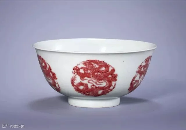 清康熙 釉里红团龙纹碗