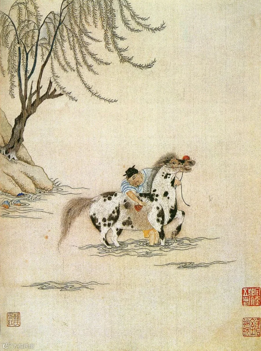 韩希孟宋元名迹册洗马图北京故宫博物馆藏
