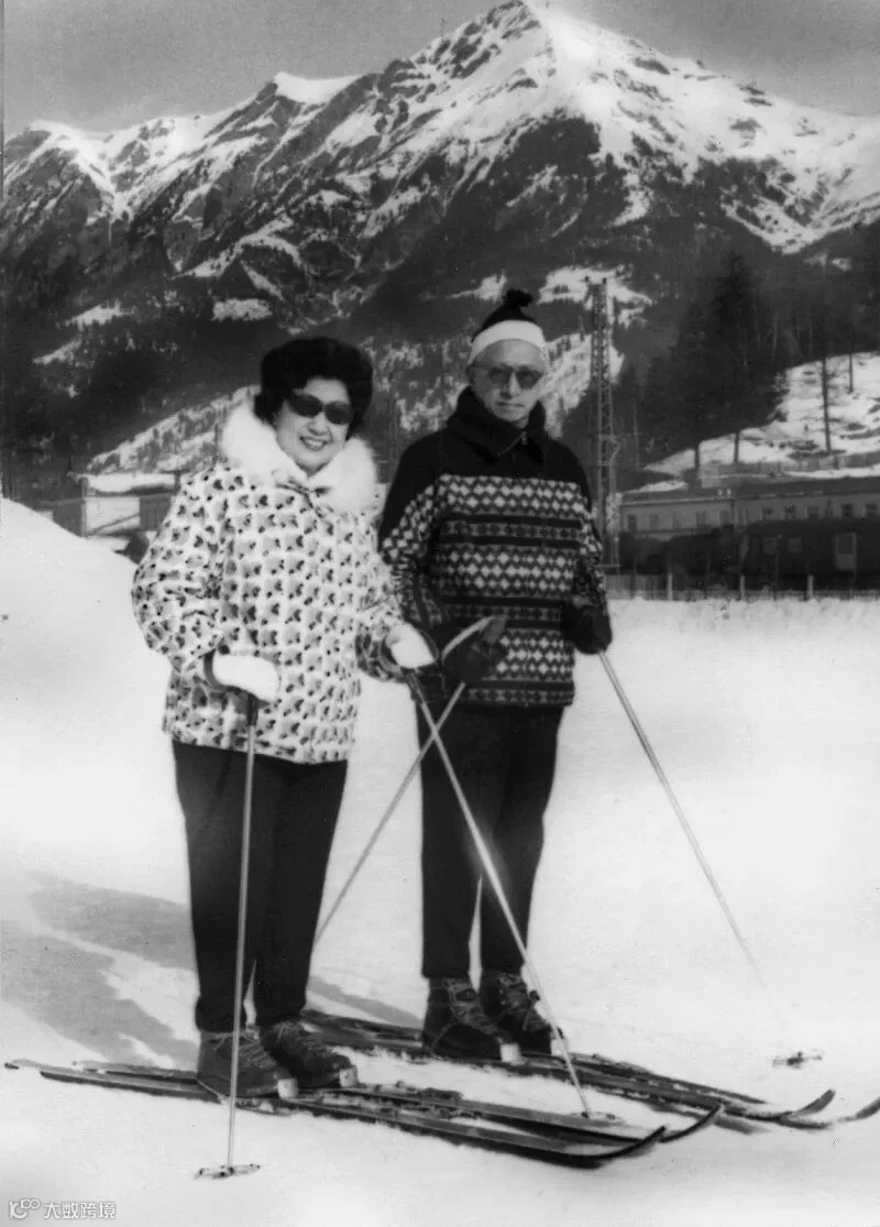 在奥地利基兹布赫滑雪的顾维钧、严幼韵夫妇