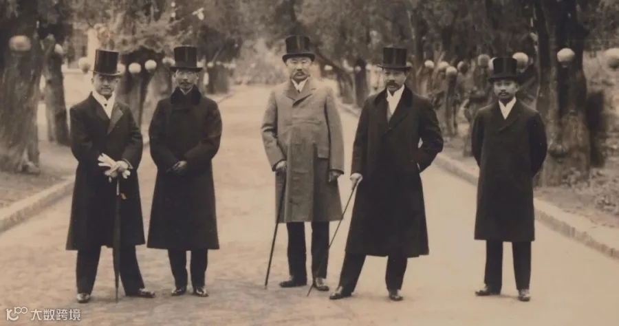 1916年元月,章宗祥(司法总长)、陆徵祥(外交总长、前国务总理)、周自齐(农商总长、前阁财政总长)、朱启钤(内务总长、前内阁国务总理)、曹汝霖(外交部次长)立于北京中央公园古柏林荫道前,五人皆为北京政府段祺瑞内阁阁员