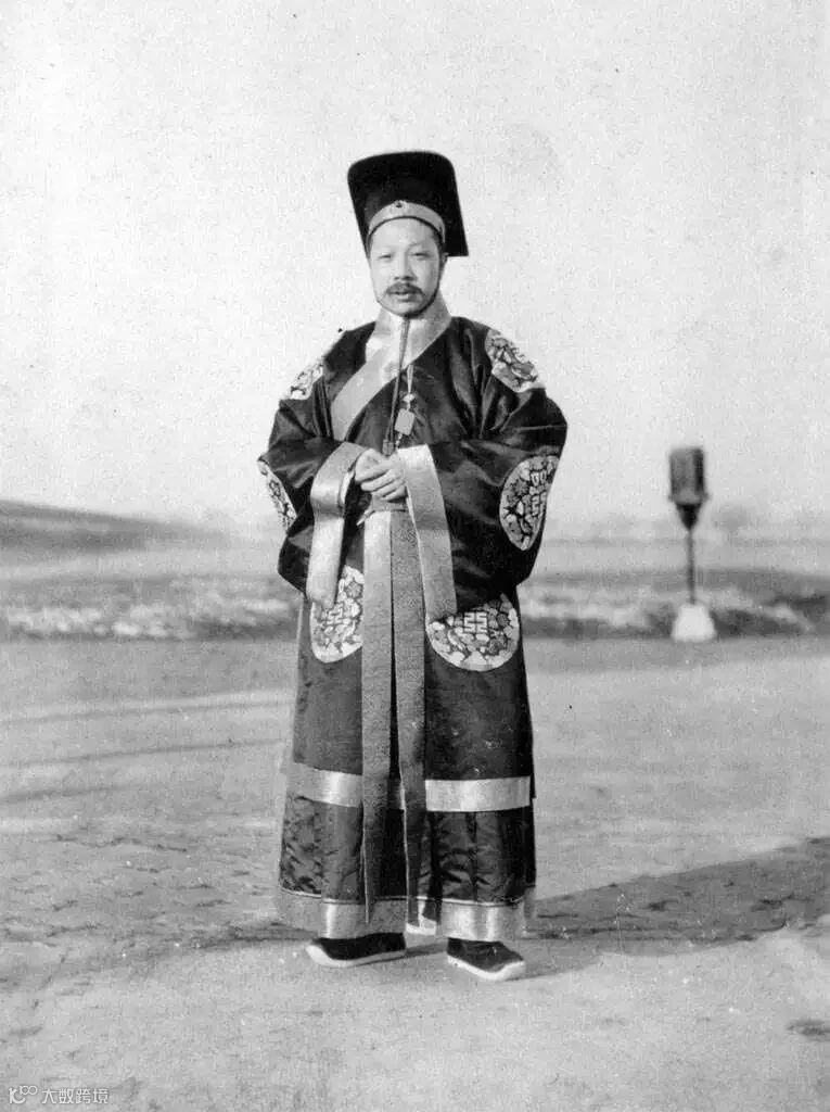 1914年,祭天仪式中穿着祭祀冠服的朱启钤
