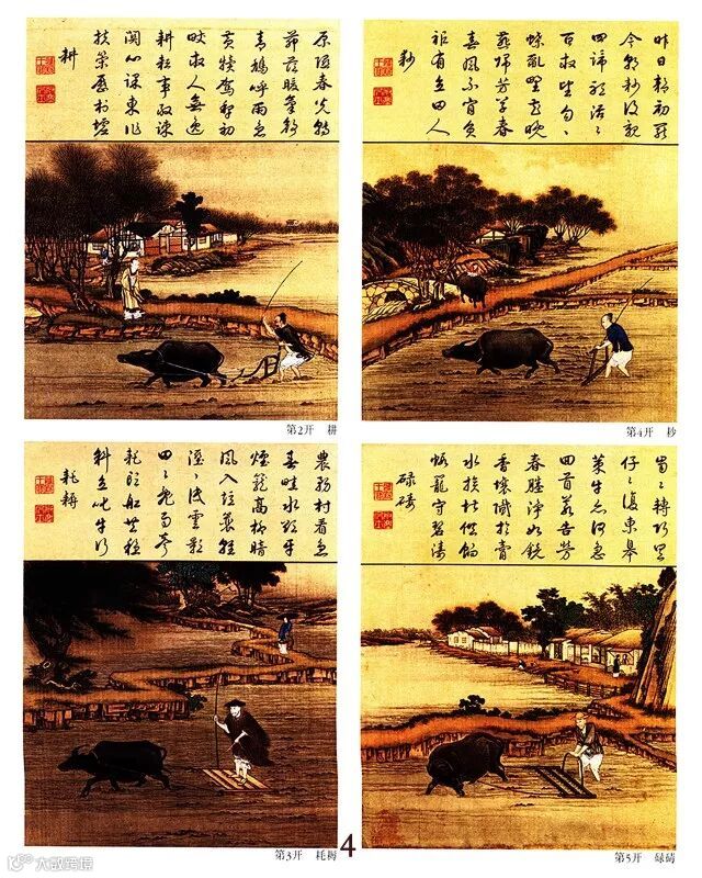 清乾隆 · 墨彩题诗耕织图册 ------ 《耕》