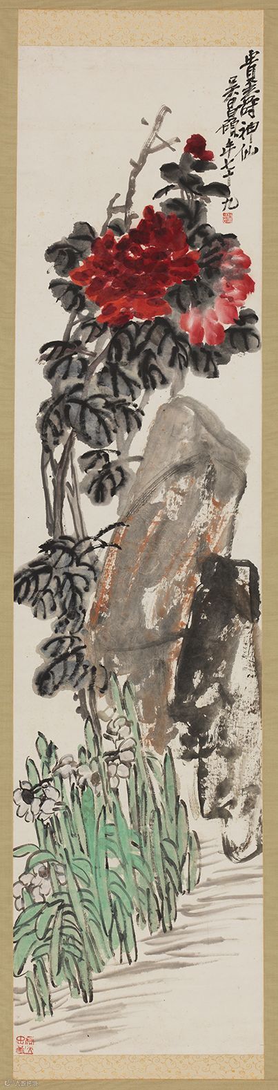 吴昌硕(1844-1927),原名俊,字昌硕,别号缶庐、苦铁、老缶、缶道人等等,浙江湖州人。中国近、现代书画艺术发展过渡时期的关键人物,"诗、书、画、印"四绝的一代宗师,晚清民国时期著名国画家、书法家、篆刻家,与任伯年、蒲华、虚谷齐名为"清末海派四大家"。是杭州西泠印社首任社长。