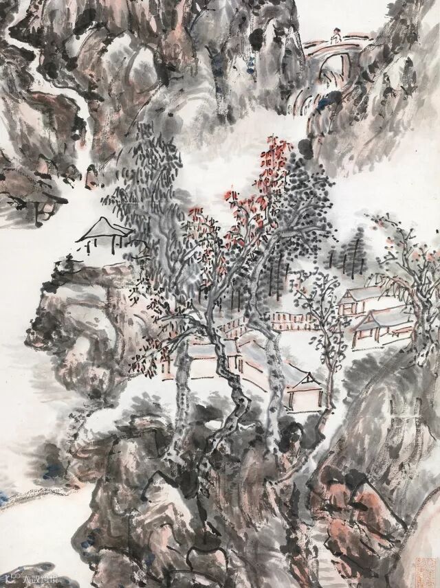此幅作品用点染法将石色的朱砂、