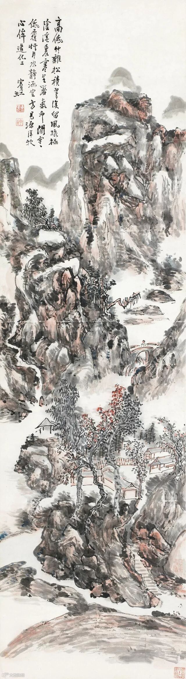 黄宾虹八十岁后作《岩北寺》