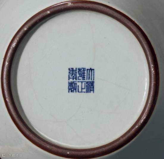 書“大清雍正年制”六字三行篆書款