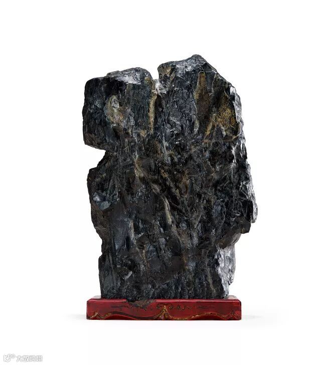 英石產於廣東省英德縣英德山壹帶,因地而得名,英石用之為賞石,宋代己有著錄可查,詩人陸遊在《老學庵筆記》中記載:“英州石山,自城中入鐘山,涉錦溪,至靈泉,乃出石處,有數家專以取石為生。其佳者質溫潤蒼翠,叩之聲如金玉,然匠者頗秘之。”可知此石於宋代即是文人坐上之賓,且頗為珍重。此山即以英石為材,狀似凝雲出岫,有形無態,其色黑如漆,體態嶙峋,超然物表,褶皺縱橫似脈絡,曲折漣漪,咫尺之間的案幾奇石,縮得山川形勝於壹體,十分生動。