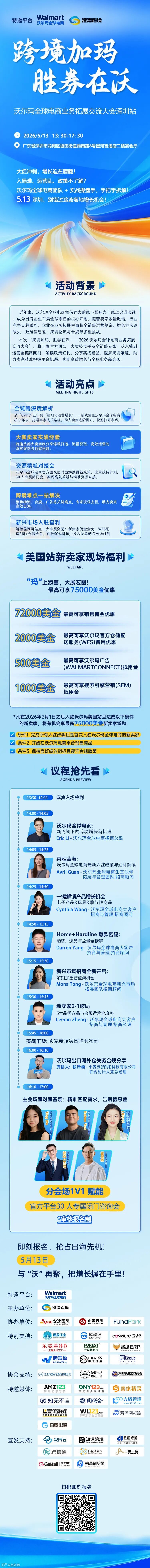 无论你是想要利用亚马逊GWD降低物流成本的资深大卖,还是想要寻找沃尔玛、Coupang新赛道红利的转型工厂,亦或是瞄准Wayfair、eMAG蓝海市场的精准猎手,4月27日下午的这场大会,都是你获取2026年最新官方信息的最佳窗口。