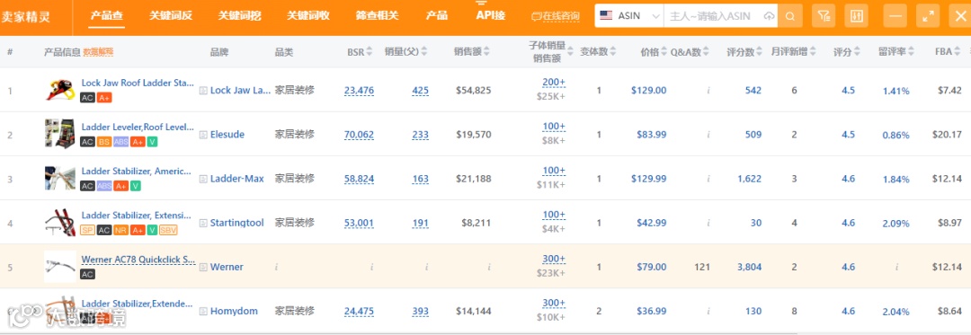 我用卖家精灵查看了一下"ladder stabilizer",可以看到这个关键词本身就有非常稳定的搜索量