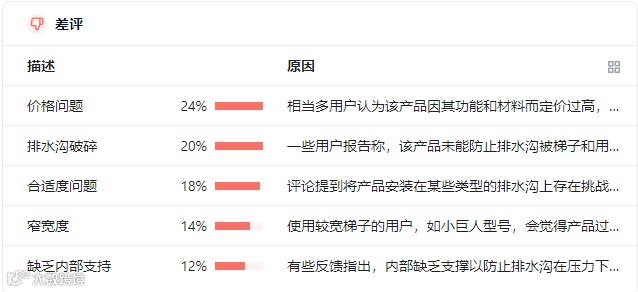 实际情况是,人在动,梯子在动,重心在变化,没有产品处理这个。有卖家精灵的AI评论分析截图为证。