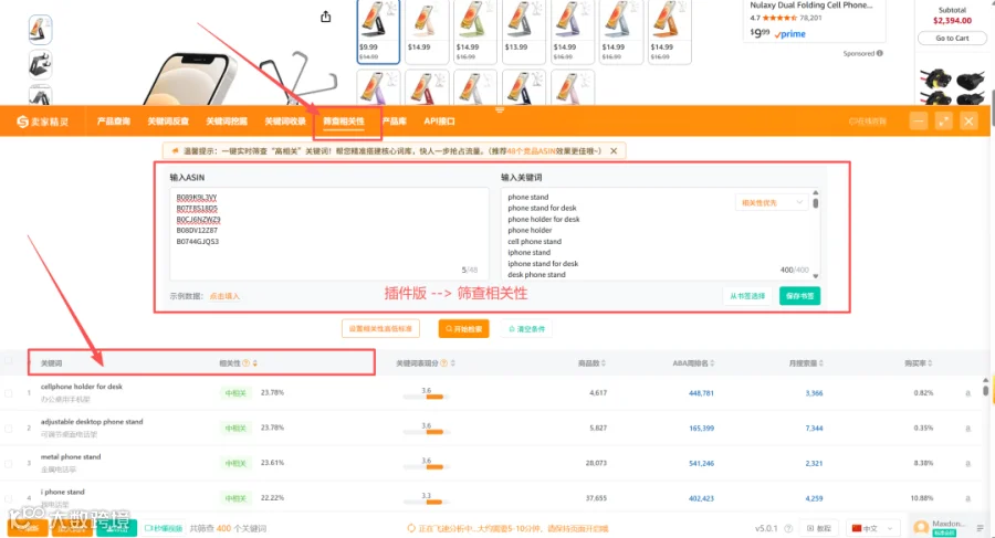更系统的方法是把你的竞品库ASIN和待评估的关键词一起放入相关分析工具进行检索,系统性地筛查每一个关键词的相关性等级——高相关、中相关、低相关/不相关。