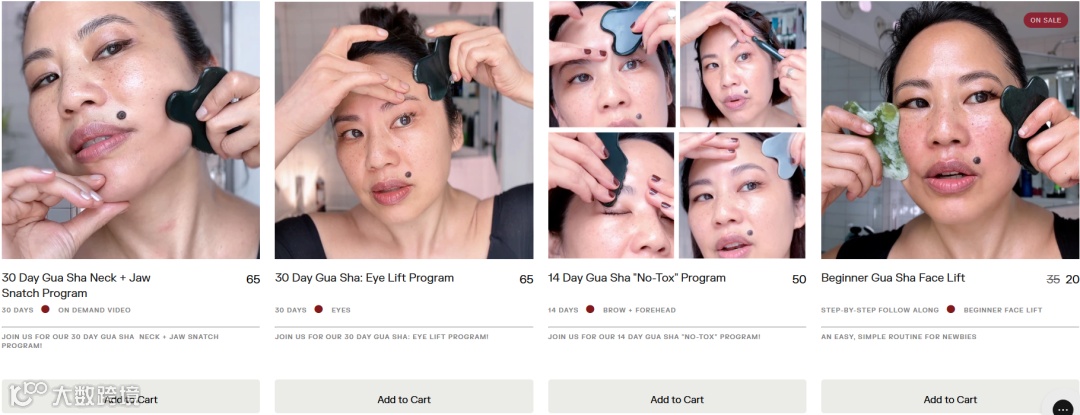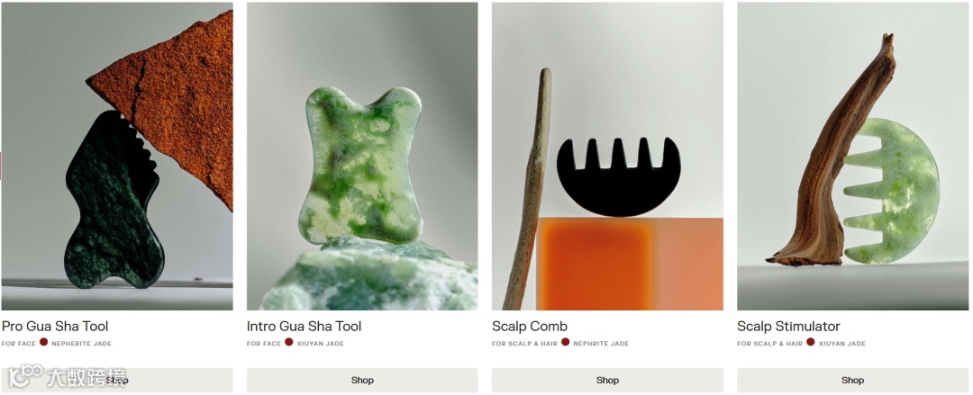 区别于简陋的白牌产品,LANSHIN瞄准高端市场:采用玉石与玫瑰石英材质,赋予"能量净化"情绪价值;推出紧致颈纹、下颚线塑造等主题套装,搭配定制按摩油及视频教程;联合专业机构验证刮痧的微循环改善效果。产品组合定价100-250美元,通过科学背书建立奢侈疗愈品类认知。