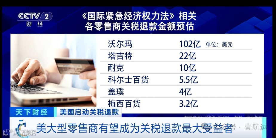 首轮仅处理清算中或近80天完成清算的报关记录。大型零售商成主要受益方:沃尔玛预计获102亿美元、塔吉特22亿美元、耐克10亿美元。短期内难影响业绩指引,但有望改善企业资产负债表。