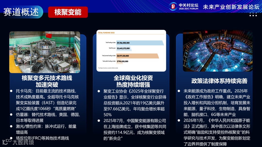 托卡马克等多元技术路线取得突破,商业化投资近五年年均复合增长率50%。“十五五”规划明确提出推动核聚变能成为新增长点,政策支持体系持续完善。