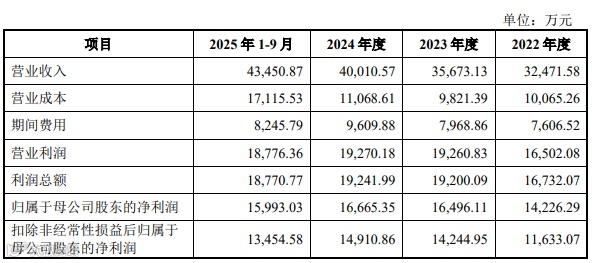 营业收入分别为3.25亿元、3.57亿元、4.00亿元和4.35亿元;归母净利润分别为1.42亿元、1.65亿元、1.67亿元和1.60亿元。