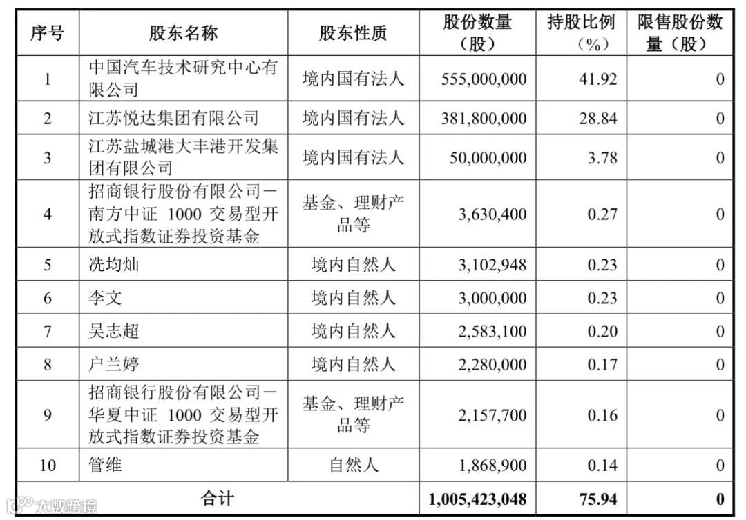 1. 控股股东为中汽中心(持股41.92%),实际控制人为国务院国资委。