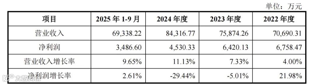 营业收入分别为7.07亿元、7.59亿元、8.43亿元和6.93亿元;净利润分别为6,758.47万元、6,420.13万元、4,530.33万元和3,486.60万元。