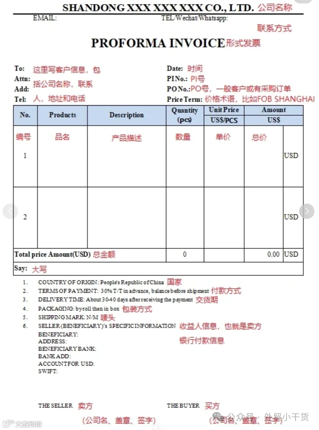 PI(Proforma Invoice,形式发票)