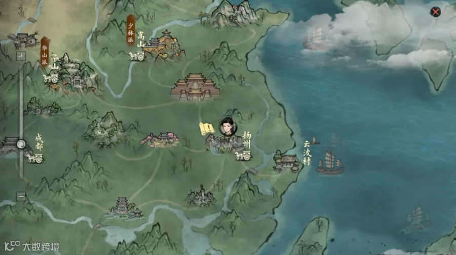 当今武侠市井文化被重视的一大前提在于武侠题材的玩法主流大多是脱胎于《武林群侠传》《金庸群侠传》的群侠传玩法,这类玩法首先十分强调自由探索的大世界地图,改变了过去武侠游戏点对点的探索逻辑,而是把门派、野外与各种大型古典城市如杭州、扬州、开封等进行捆绑,让侠客主角的探险高密度留在城市之内。