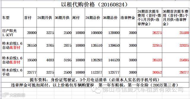 “那咱就先租车,活人还能被尿给憋死嘛!”大白自言自语到,从网站上咨询了几家租车公司,发现租车对于现在的他来说也并不划算,他需要长期使用,每个月长租的费用和分期付款差不多了,最后车还不是自己的,还不能作为固定资产变卖。但在挨家咨询租车公司的过程中,并不是没有收获,大白获知了佛山市信威汽车租赁有限公司以租代购业务。