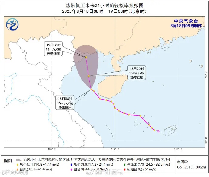 8月18日08时,南海热带低压中心位于广州西偏南方向约725公里的海面上,也就是北纬18.9度,东经108.1度,中心附近最大风力7级(15米/秒),中心最低气压1002百帕。预计,热带低压将以每小时10公里左右的速度向偏北方向移动,强度变化不大。受其影响,广东省中南部市县又有明显降水和强对流天气,沿海和南海中北部海面风力增大,滨海旅游、海上作业和海面过往船只等水上活动注意防范海上大风和强对流。