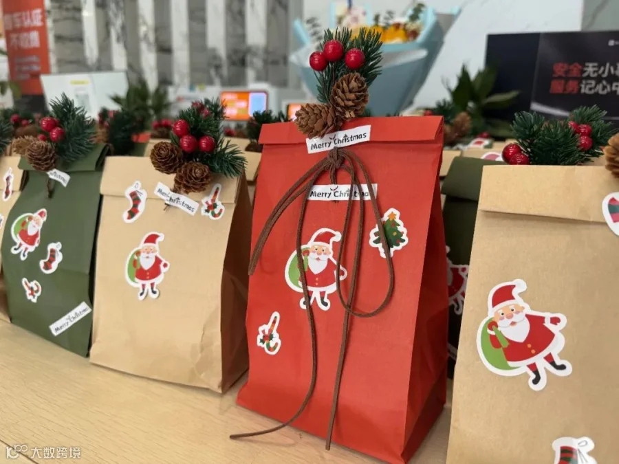 “师傅,辛苦了!圣诞快乐!”工作人员将一份份精心包装的圣诞礼品递到司机师傅手中。
