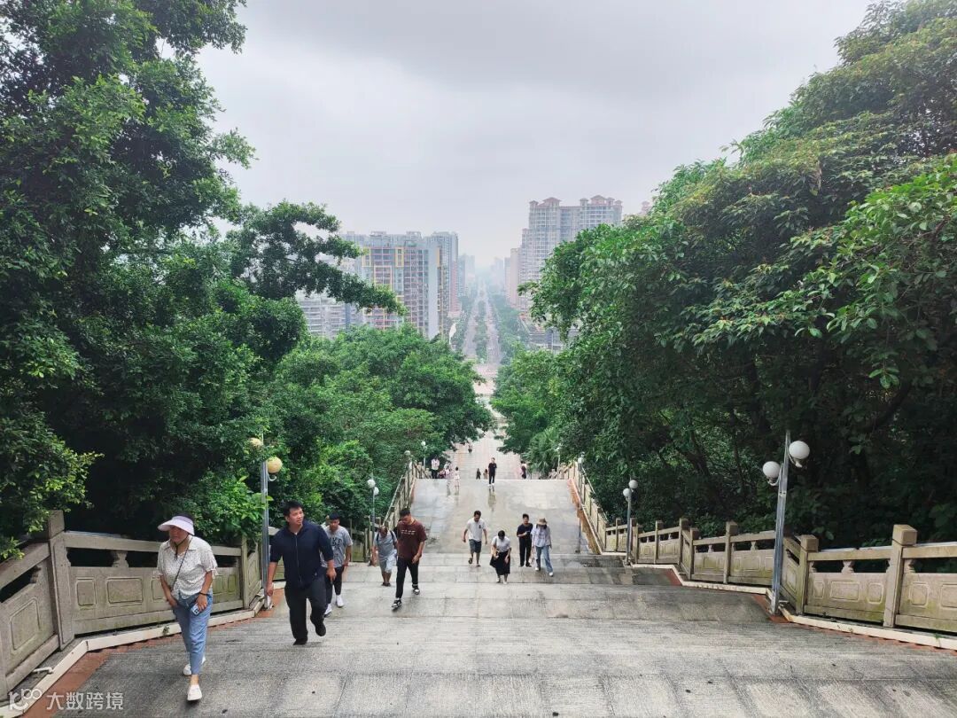 清远百步梯位于清远清新区的清新大道中轴线北端与环城路交汇处的花尖山脚,是一个集休闲运动和歇息的场所!该公园总占地面积达300亩,有原生态松林,还建设一座高度100米的观景台,配套游乐区、商务区等等。观景台是松林生态公园的主体设施,设计有瀑布、浮雕、凉亭和名贵花草树木。站在观景台上可鸟瞰清远市区和清新县全景。登高望远,一览城景!