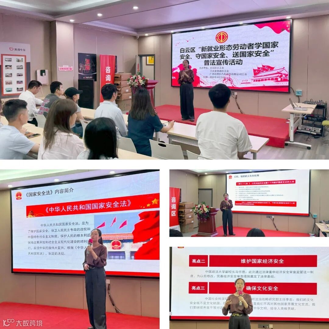 2025年4月15日,一场意义非凡的 “新就业形态劳动者学国家安全、守国家安全、送国家安全” 普法宣传活动,走进了明信出行。此次活动由白云区总工会、三元里街道总工会、广州市明信汽车租赁有限公司工会携手举办。由广东芳华律师事务所甘颖诗律师主讲,明信出行公司多位在职司机及员工参加了本次普法宣传活动。