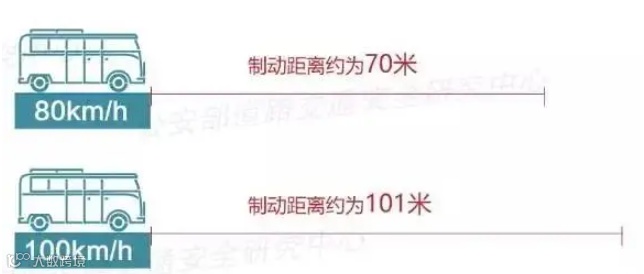 数据显示,在干燥水平路面上,时速为80公里时,制动距离约为70米,时速为100公里时,制动距离达到101米,而时速为140公里时,制动距离达到173米!当前车遇到紧急情况刹车时,同车道后车如超速行驶,则极易发生追尾事故。