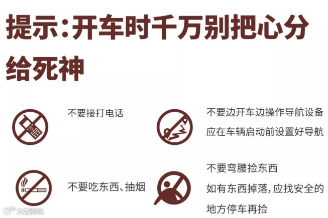 开车小心谨慎、精神集中、遵守交通法规,切勿随意变道、高速停车等。