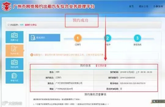 2.考虑到申请人数较多,建议您先通过广州市网络预约出租汽车综合业务管理平台预约报名时间和地点,预约成功后再前往报名点现场提交材料,以免造成不便。