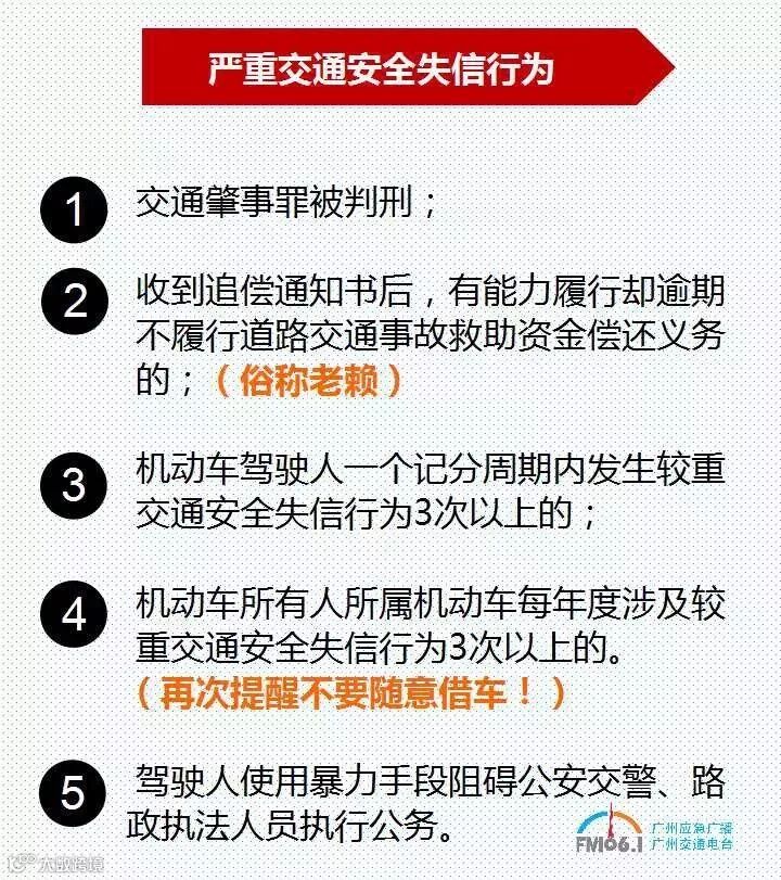 第九条 有下列情形之一的,构成严重交通安全失信行为: