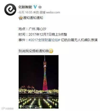 记者从广州亿航智能技术有限公司的官方微博上发现,嗯!今晚来表演的就是它——亿航白鹭无人机编队!