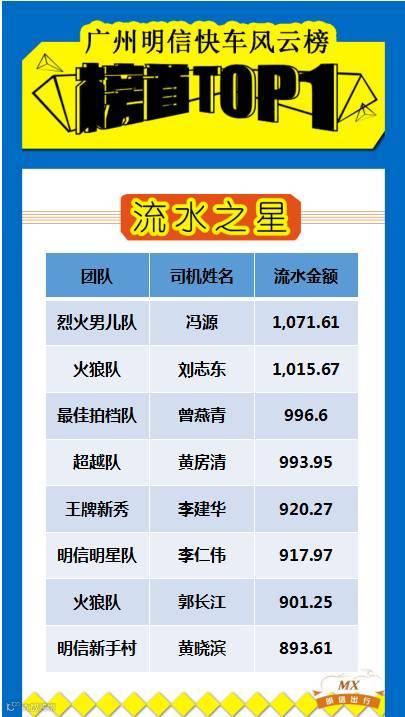 明信出行·快车荣誉榜