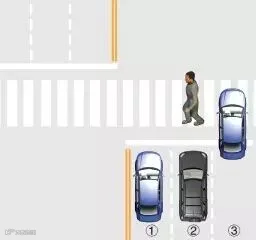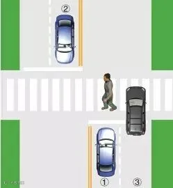 ①、②车道上的机动车停车让行,③车道的机动车在确保安全的情况下,允许低速通行。