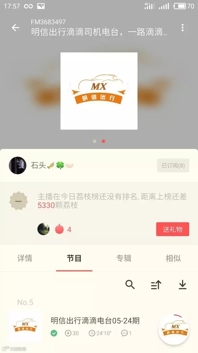 各位师傅,记得下载“荔枝FM” app,搜索:FM3683497,即可订阅收听“明信出行车主电台”——一路滴滴一路情,在这里有来自滴滴司机内心深处的声音,也有诚意满满的经验分享,有欢笑、有感动,让你的滴滴旅途不再孤单。