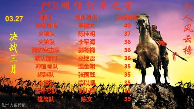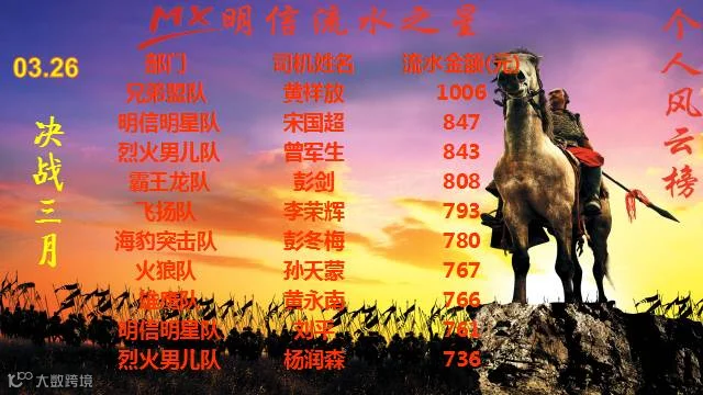 明信对公快车风云榜