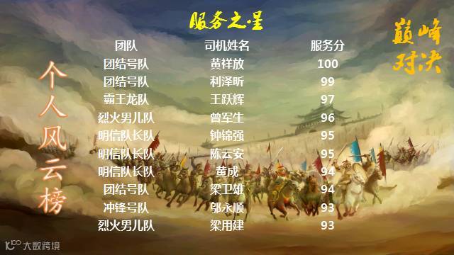 厉害啦~恭喜黄祥放师傅,成为公司第二位服务分达到100分的司机,将获得1000元现金大奖!希望其他师傅继续努力,向着满分100分前进!