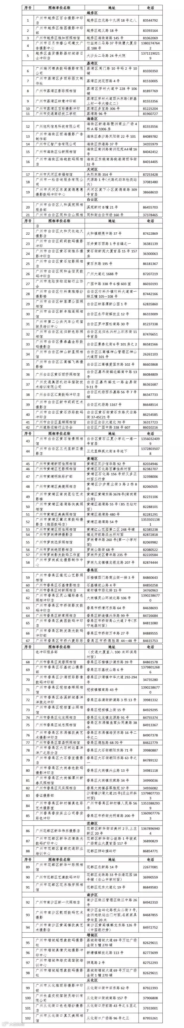 照相单位名单