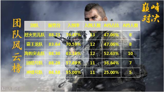 烈火男儿队的入围率最高