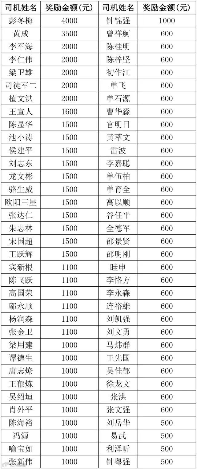 恭喜:曾师傅和黄师傅服务分达到满分100分,获得现金1000元奖金