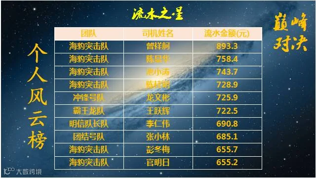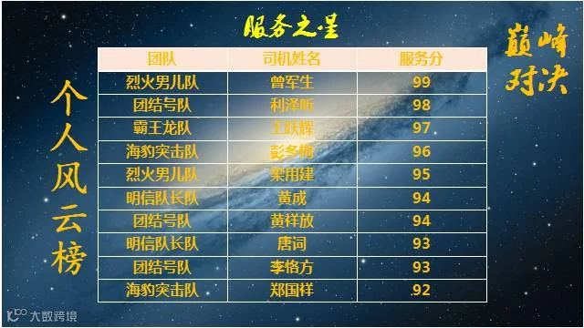 因为数据有限,目前只有流水的排行榜,接下来会新增专车师傅也特别关心的“服务分”一项,敬请期待~~
