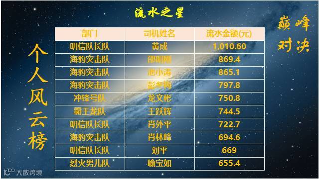 服务、流水、订单风云榜